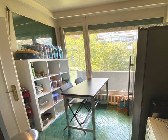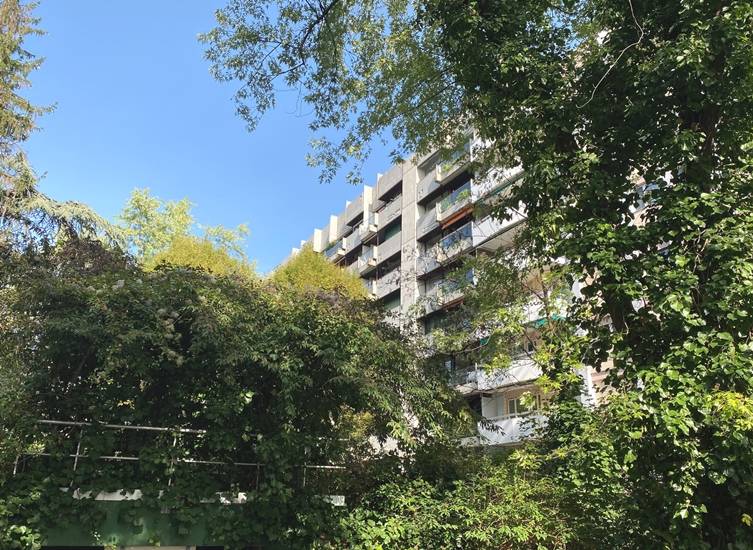 Le quartier est calme et verdoyant, situé à quelques minutes à pied de toutes les commodités. La construction et l'entretien du bâtiment sont de qualité. L'appartement est traversant, il se situe au 4ème étage et possède deux balcons sur le côté "est" avec vue dégagée et un balcon côté "ouest" donnant sur un grand espace vert.
